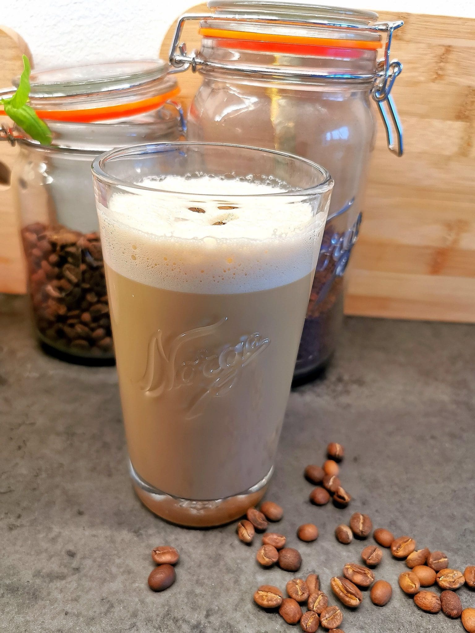 - Server keto kaffe i glass/kopp og nyt.