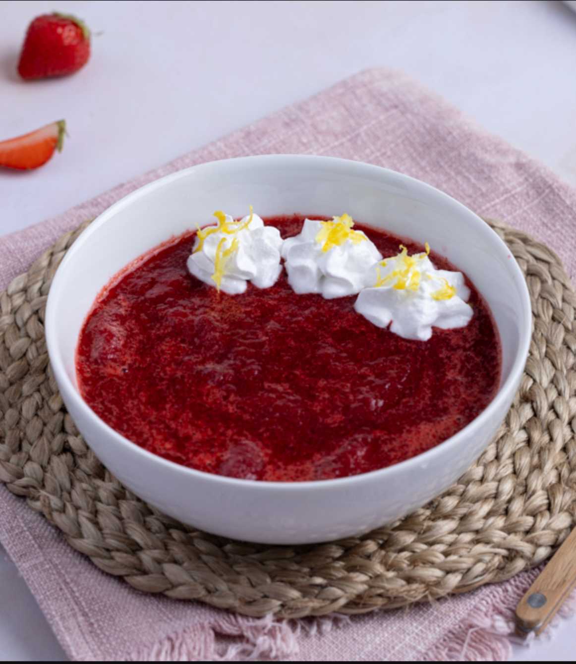 Frisk, sunn og god lavkarbo jordbærkompott med krem