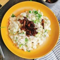 Vi har erstattet den hvitesausen med kremost, også har vi erstattet potetstappe med sellerirotpuré. To gode erstatninger som gjør denne fiskeretten keto-vennlig, og kan nytes av de som spiser et ketogent kosthold.